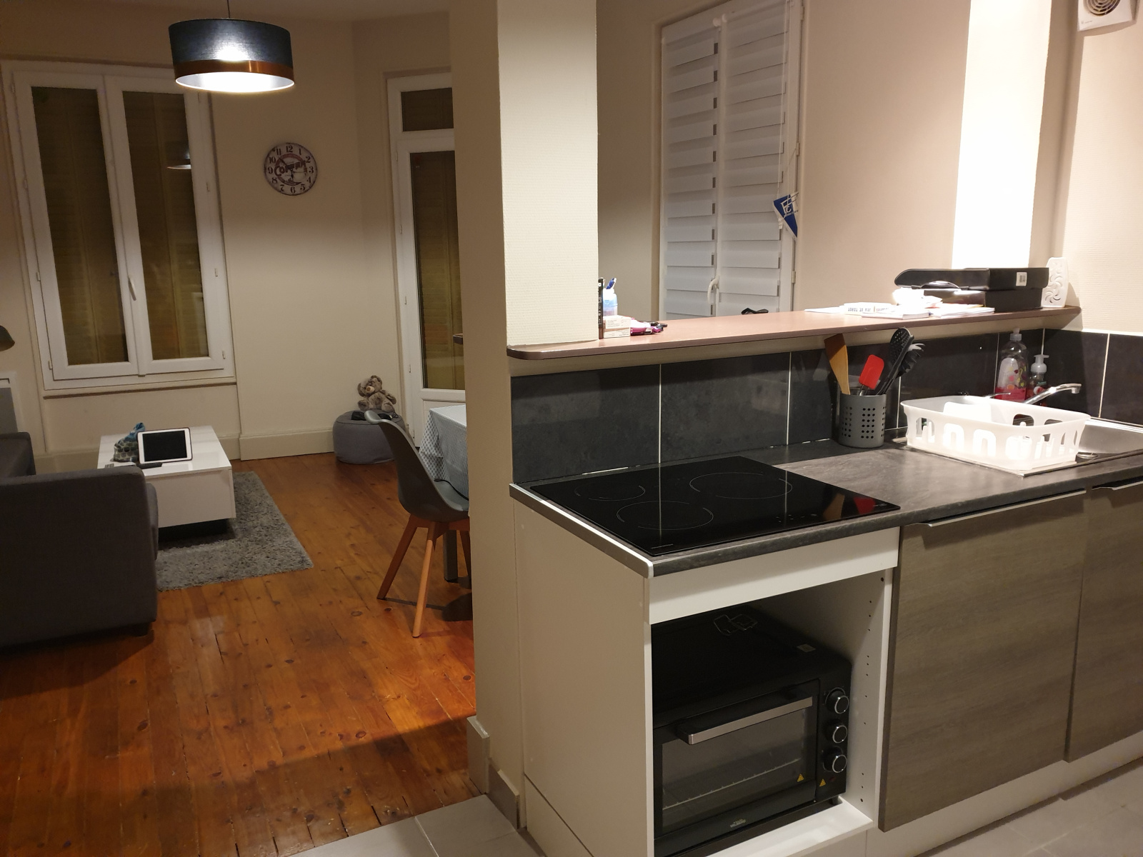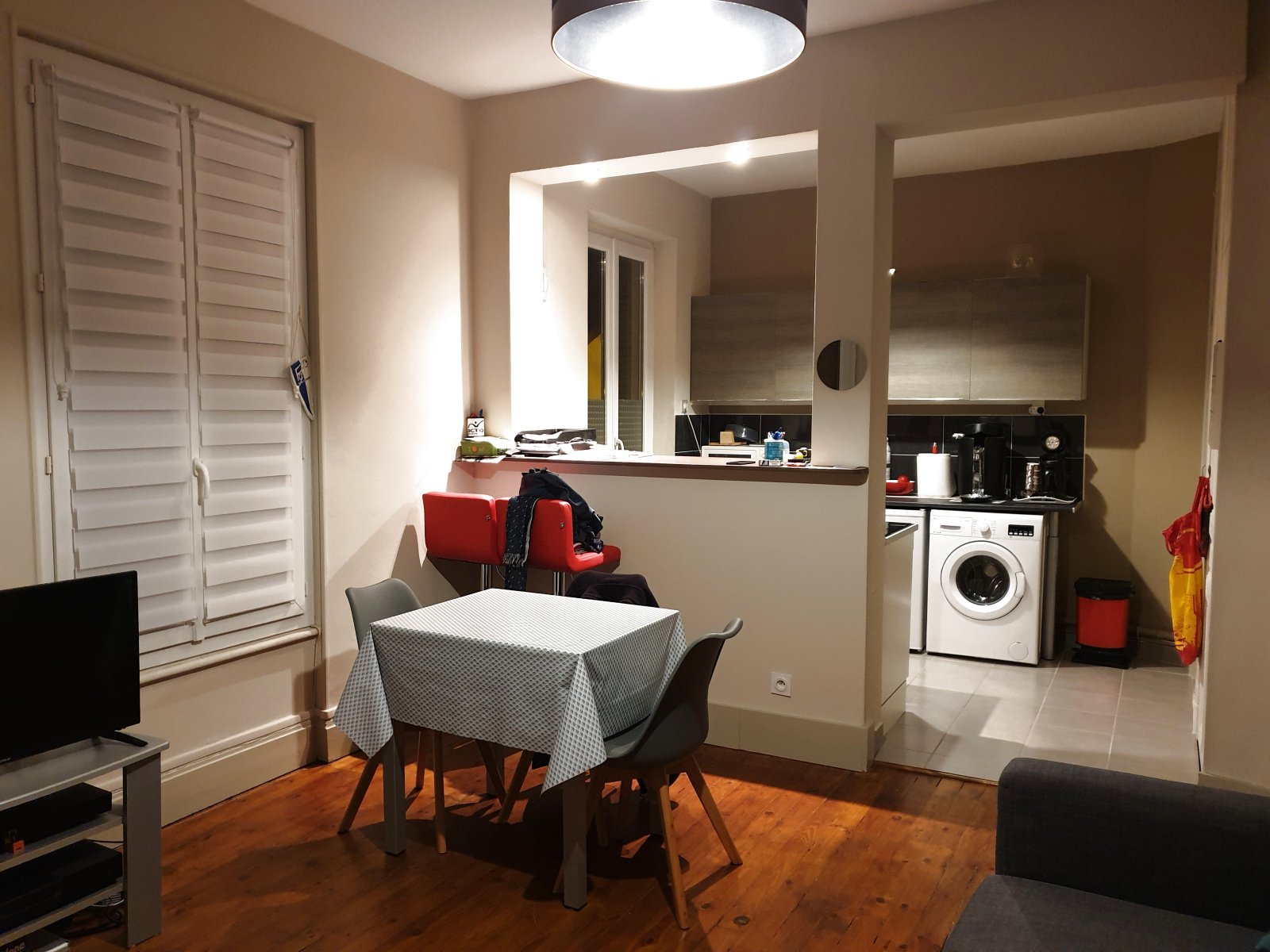 VICHY quartier Alsace marché couvert, coquet appartement F2 de 43m² au 1er étage d'un petit immeuble avec cuisine aménagée ouverte sur séjour, petit balcon, une chambre et salle de douche. Double vitrage, chauffage électrique - Libre de suite.