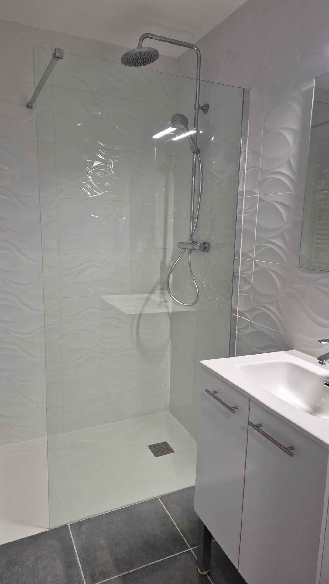Elle se compose : entrée avec placard, cuisine aménagée et équipée ouverte sur séjour . 3 chambres, douche à l'italienne.
