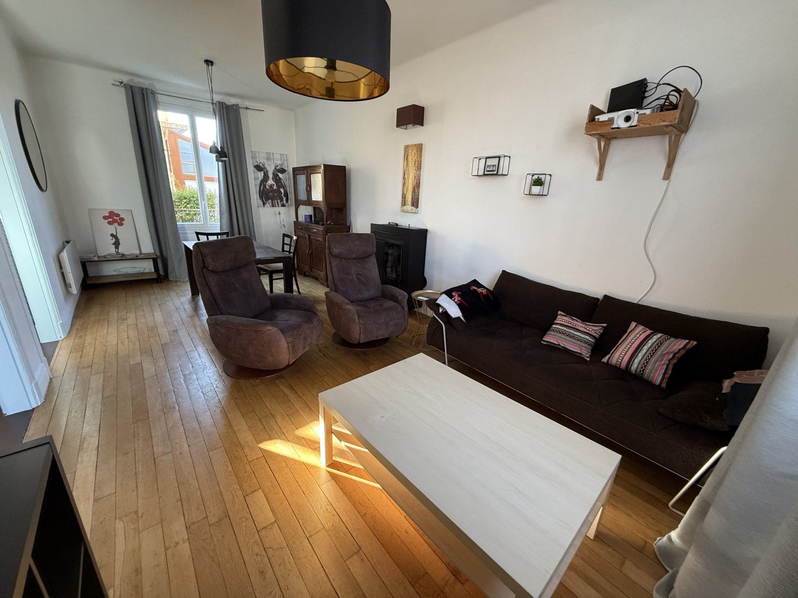 Charmante maison indépendante au calme, composée d'une belle entrée desservant un séjour traversant, une cuisine ouverte donnant sur l'extérieur, wc, et au 1er : 2 grandes chambres, bureau et sdb avec wc, un sous sol complet, un garage, jardin clos de 372 m², chauffage climatisation réversible + poêle à granules, toiture neuve.