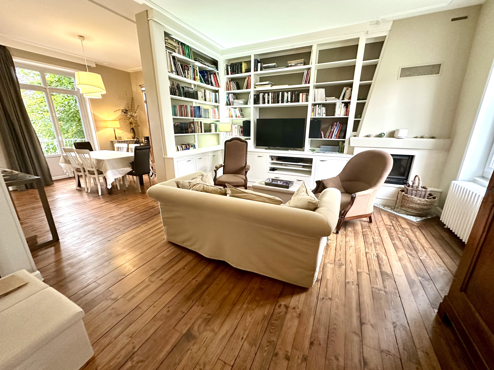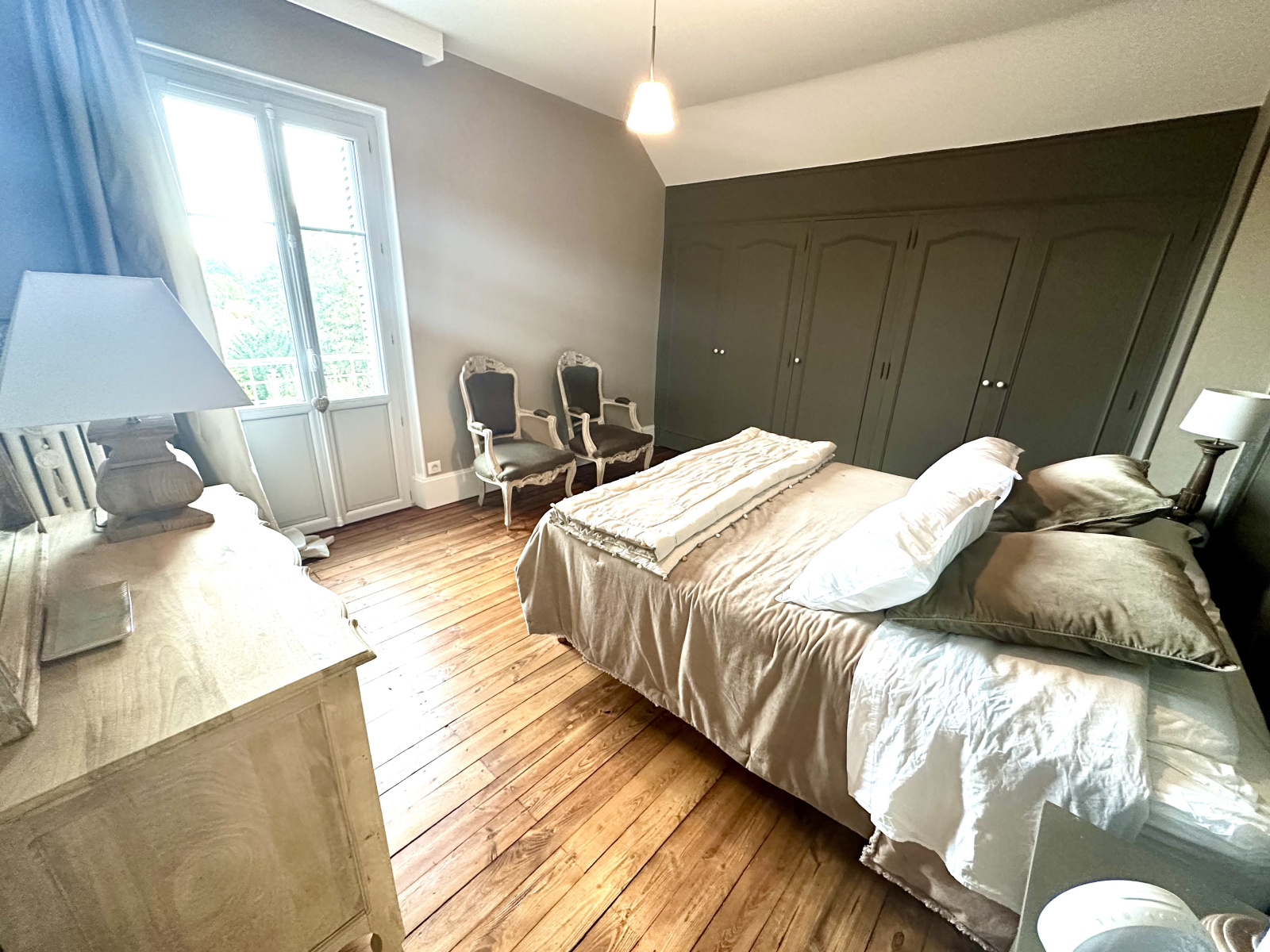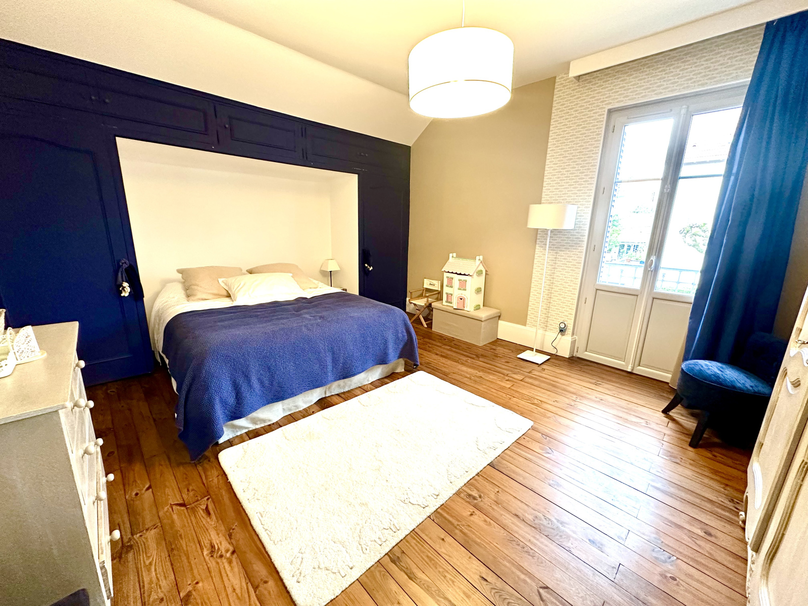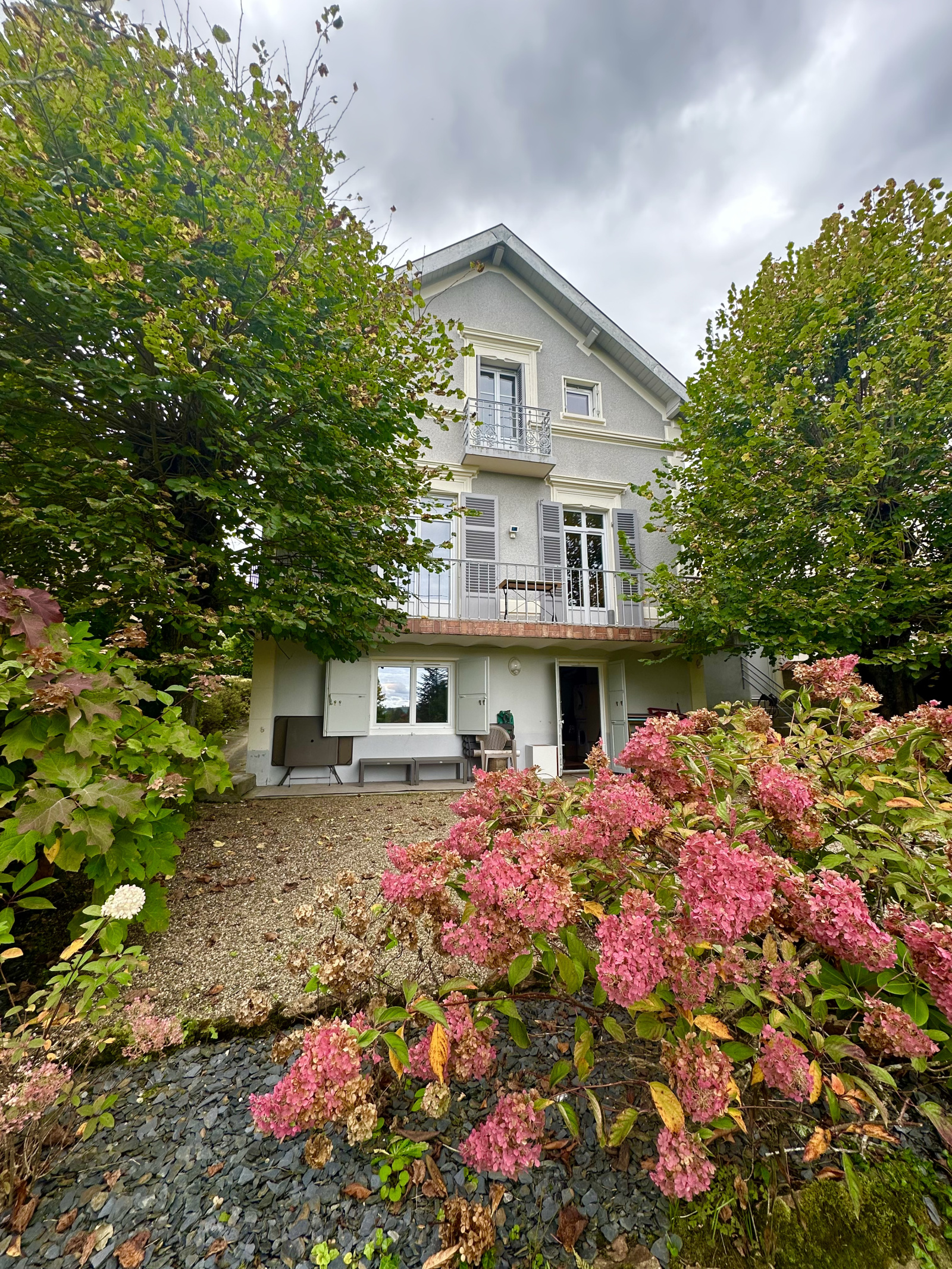 Coup de coeur pour cette villa de caractère baignée de lumière, avec vue dominante sur un terrain joliment arboré, comprenant au rdc : une vaste entrée avec carreau de ciment d'époque, desservant un double séjour avec parquet et belle hauteur sous plafond, donnant sur balcon un filant, cuisine équipée, et un wc, au 1er : 2 grandes chambres 15 et 20 m², une salle d'eau, wc, dressing, et en rez de jardin un sous sol complet avec une chambre de plain pied sur le jardin, une cuisine d'été, sd'eau possible, rangements, chaufferie, le tout sur un jardin sans vis à vis de 811 m² avec SPA, garage. Bon état d'entretien.