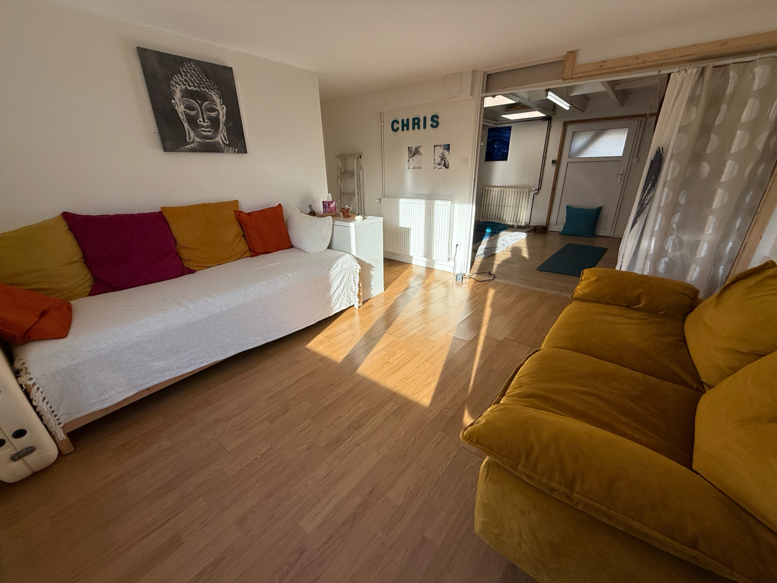 Coquette maison au sein d'un quartier calme et champêtre à 2 pas des commerces. Elle bénéficie d'une vie de plain pied en rdc surélevé, composée d'un salon ouvert sur cuisine équipée donnant sur une terrasse avec vue sur la verdure, une chambre et sa salle d'eau privative, wc.
