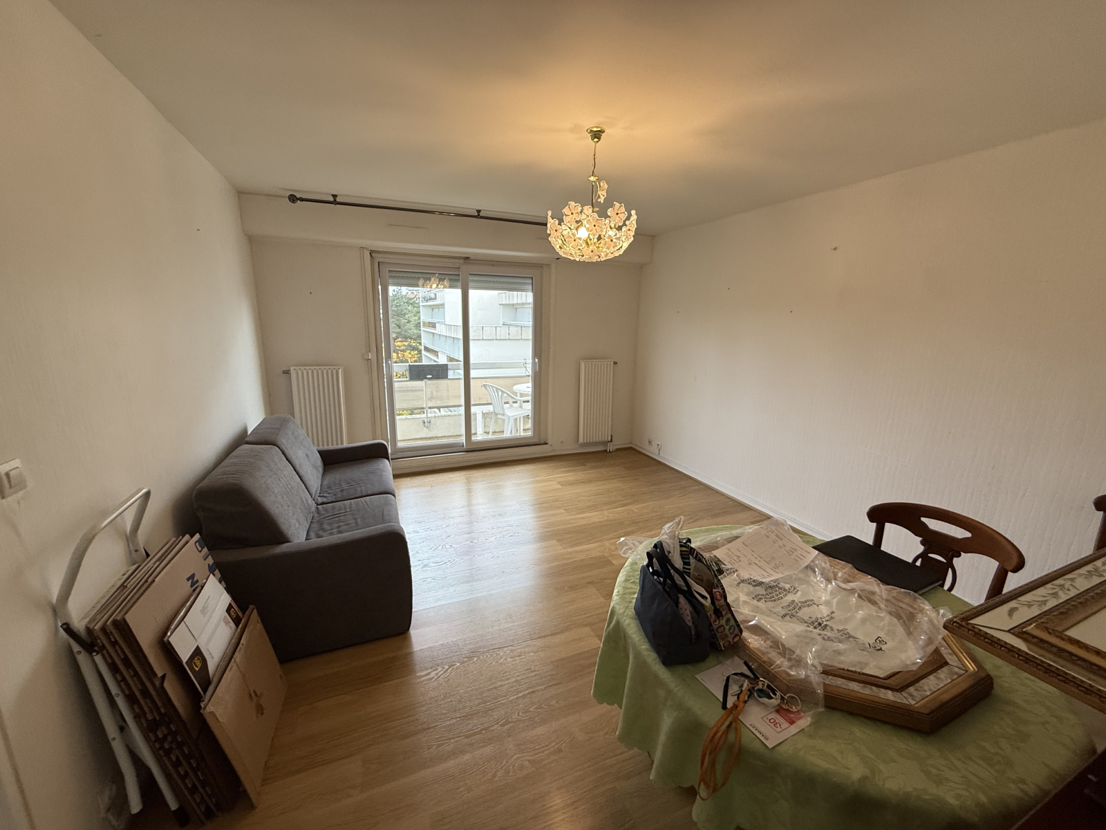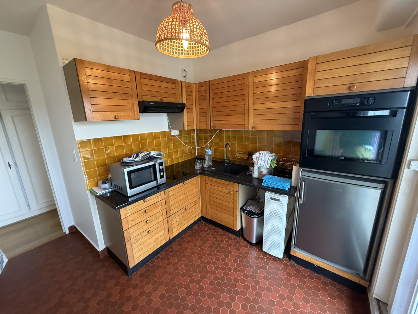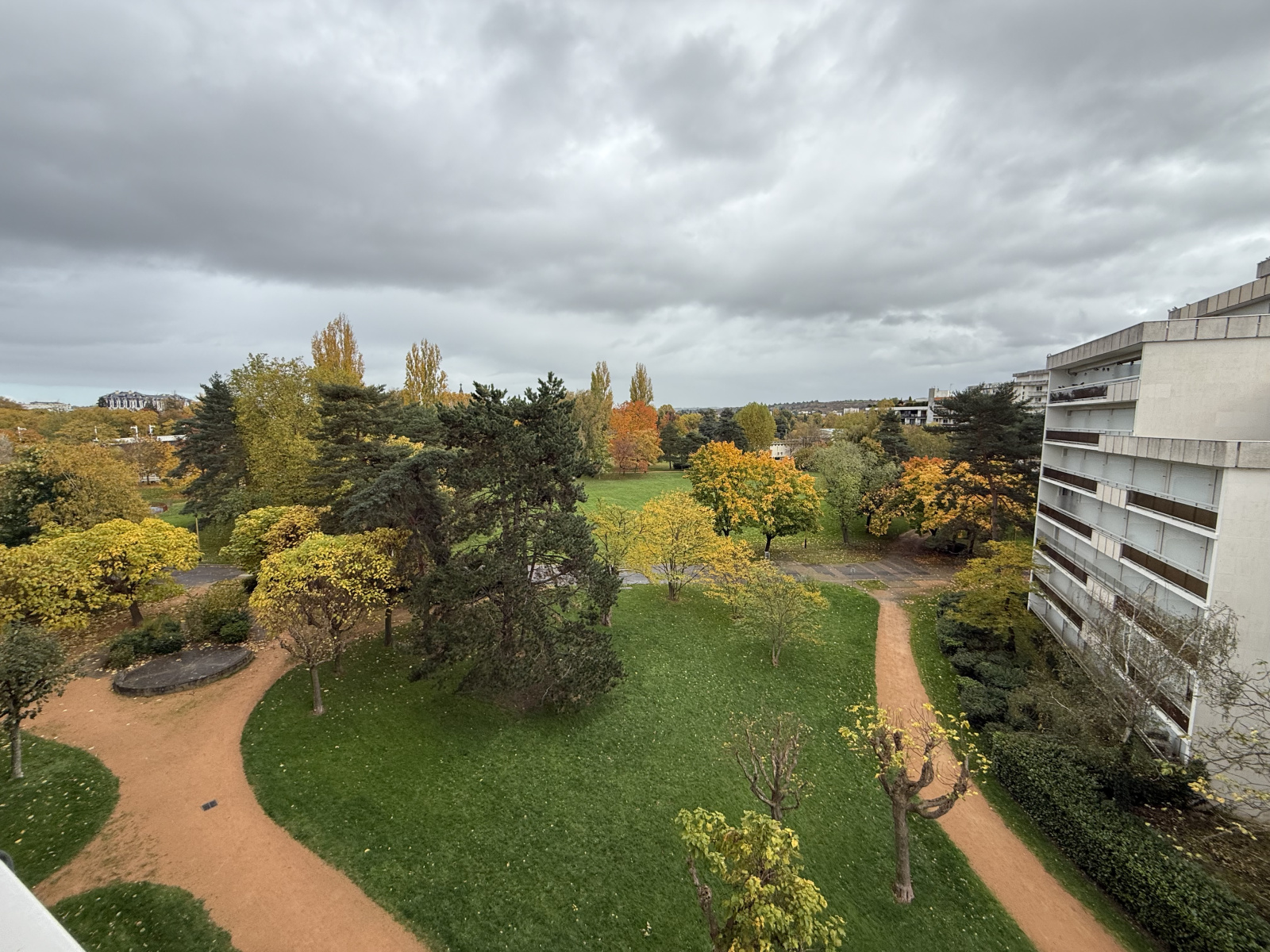 Carré d'as, au 5ème étage d'une résidence sécurisée : T2 de 45 m² composé d'une entrée avec rangements, cuisine équipée, séjour, chambre, salle d'eau et wc. Balcon. Magnifique vue dégagée sur parc et plan d'eau.