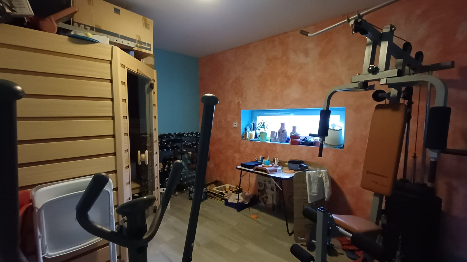 Maison offrant une partie habitable de 116m2, la partie principale, située en RDC surélevé, propose un hall d’entrée, une cuisine équipée avec coin repas, un salon lumineux avec accès direct à la terrasse, de 3 chambres dont une aménagée en séjour, une salle d’eau et de WC indépendants. En rez-de-jardin, vous trouverez une buanderie / cuisine d’été avec accès à une terrasse carrelée, une chambre, un bureau, une pièce de sport avec sauna, une salle d’eau et des WC, ce niveau peut aisément être aménagé en appartement indépendant soit une surface totale de 150 m² de surface utilisable. La maison dispose également d’un double garage. Implantée sur un terrain de 1 081 m² clos, elle bénéficie de deux carports récents, dont un adapté au stationnement d’un camping-car.