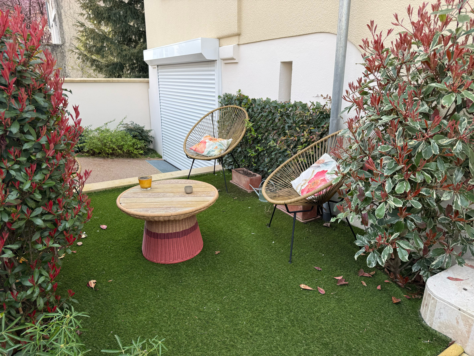 Un garage avec volet roulant électrique.
