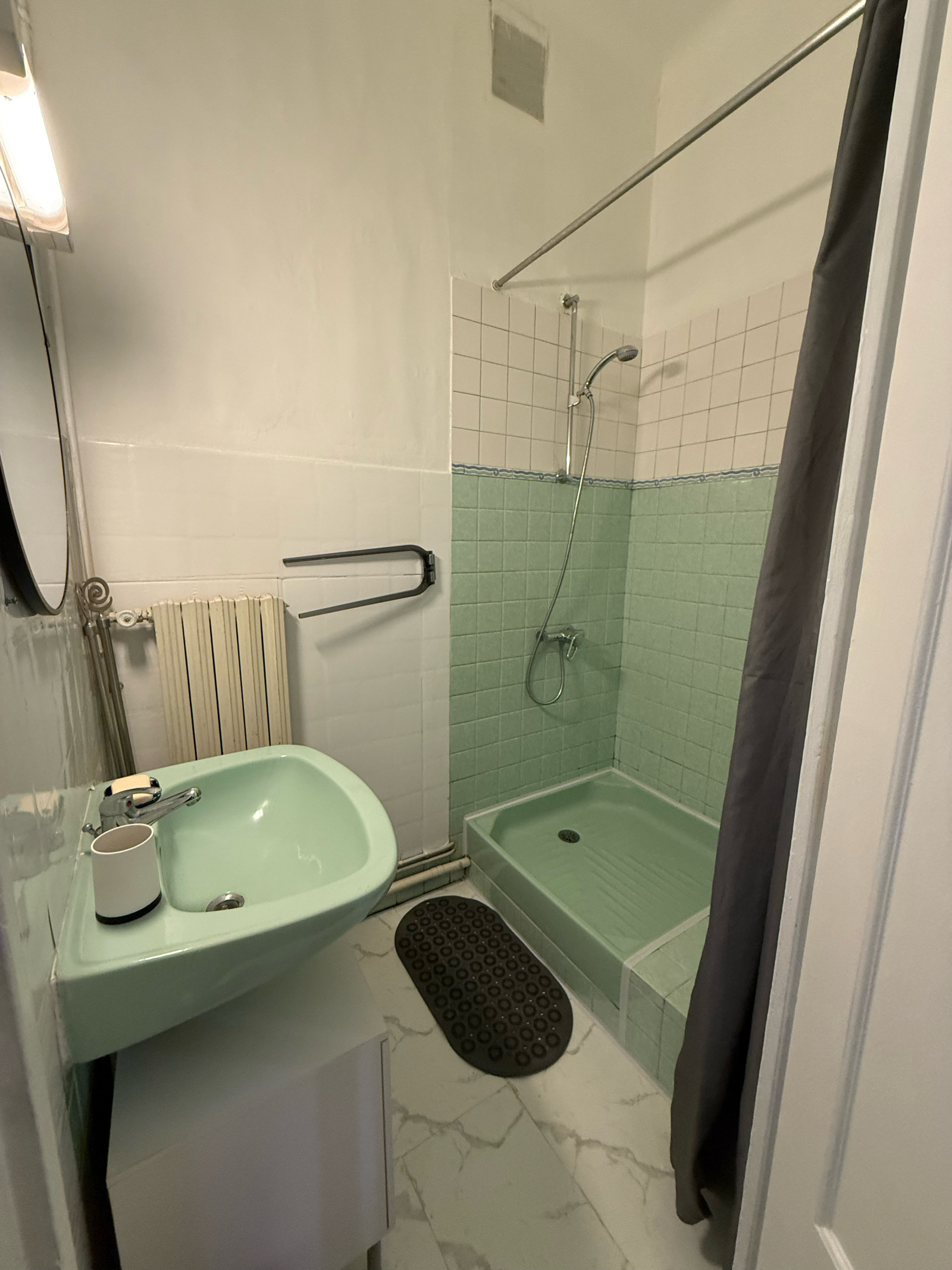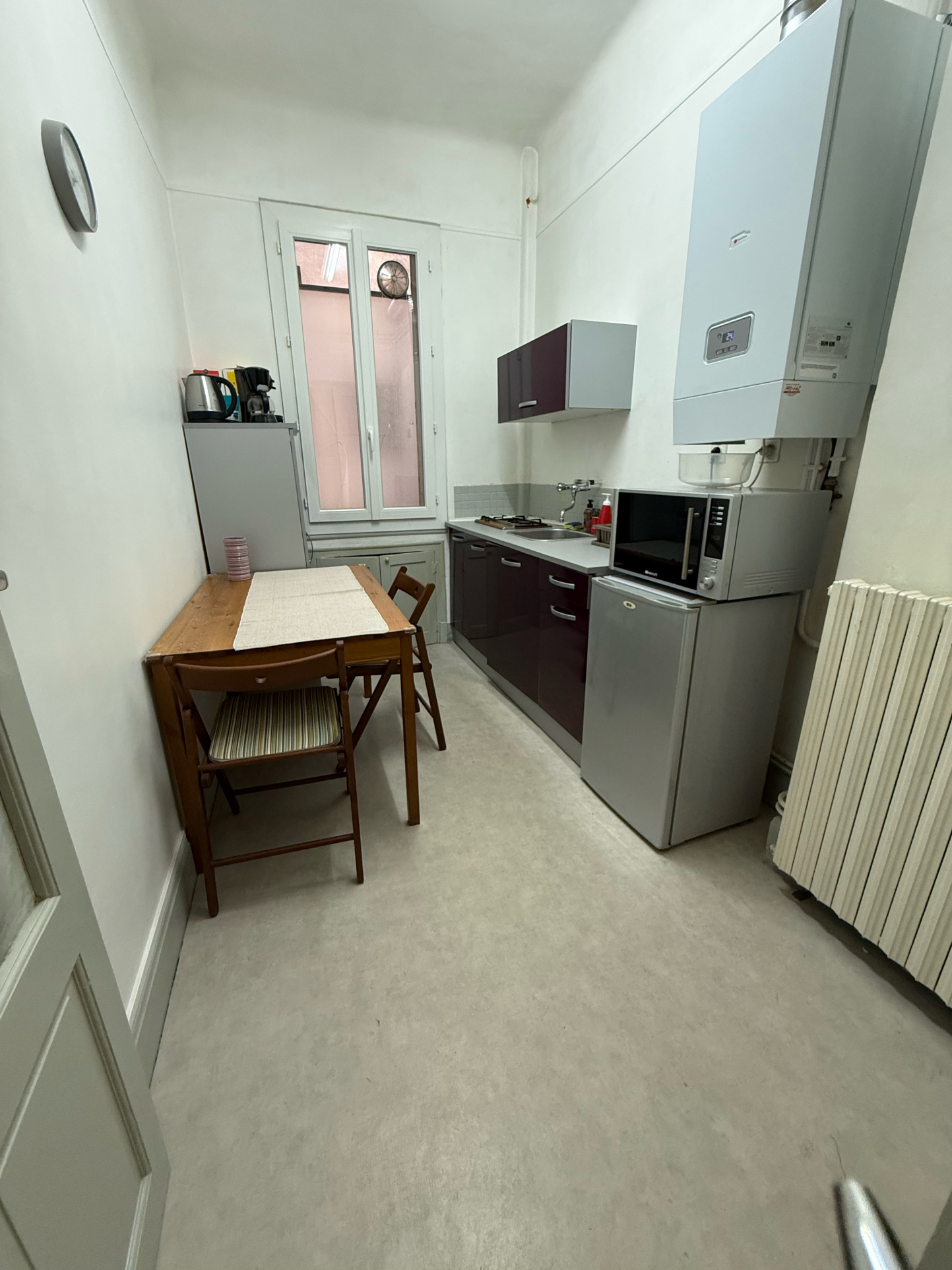 Dans copropriété années 30, au 1er étage avec ascenseur, charmant T1 de 33 m² en bon état, composée : d'entrée, wc indépendant, cuisine équipée, salle d'eau, pièce de vie donnant sur une terrasse. Chaudière gaz neuve.