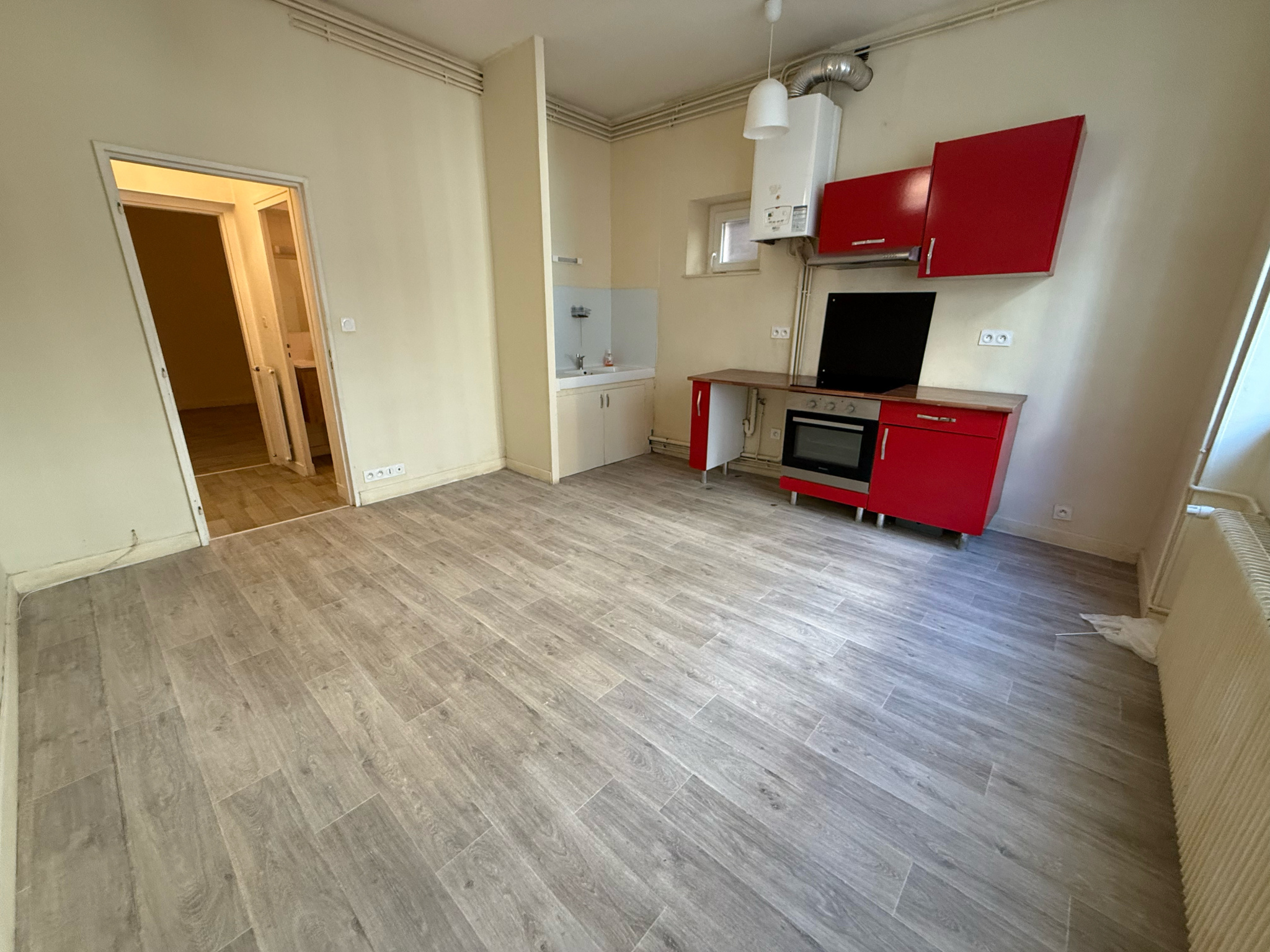 Dans une petite copropriété, T2 de 39 m² en bon état, composé : d'une pièce de vie avec cuisine équipée, une salle d'eau neuve, chambre sur cour au calme, chauffage gaz, cave.