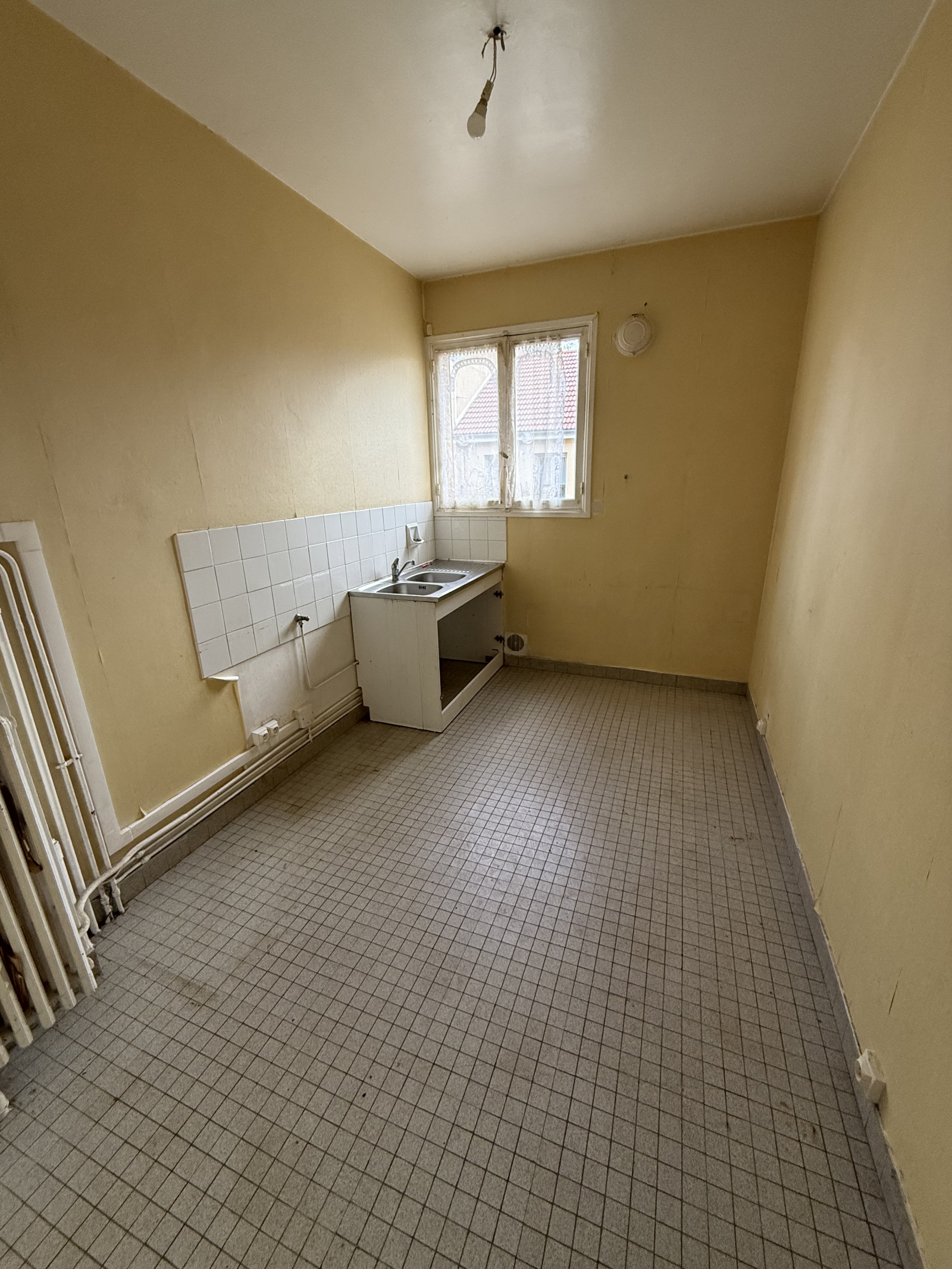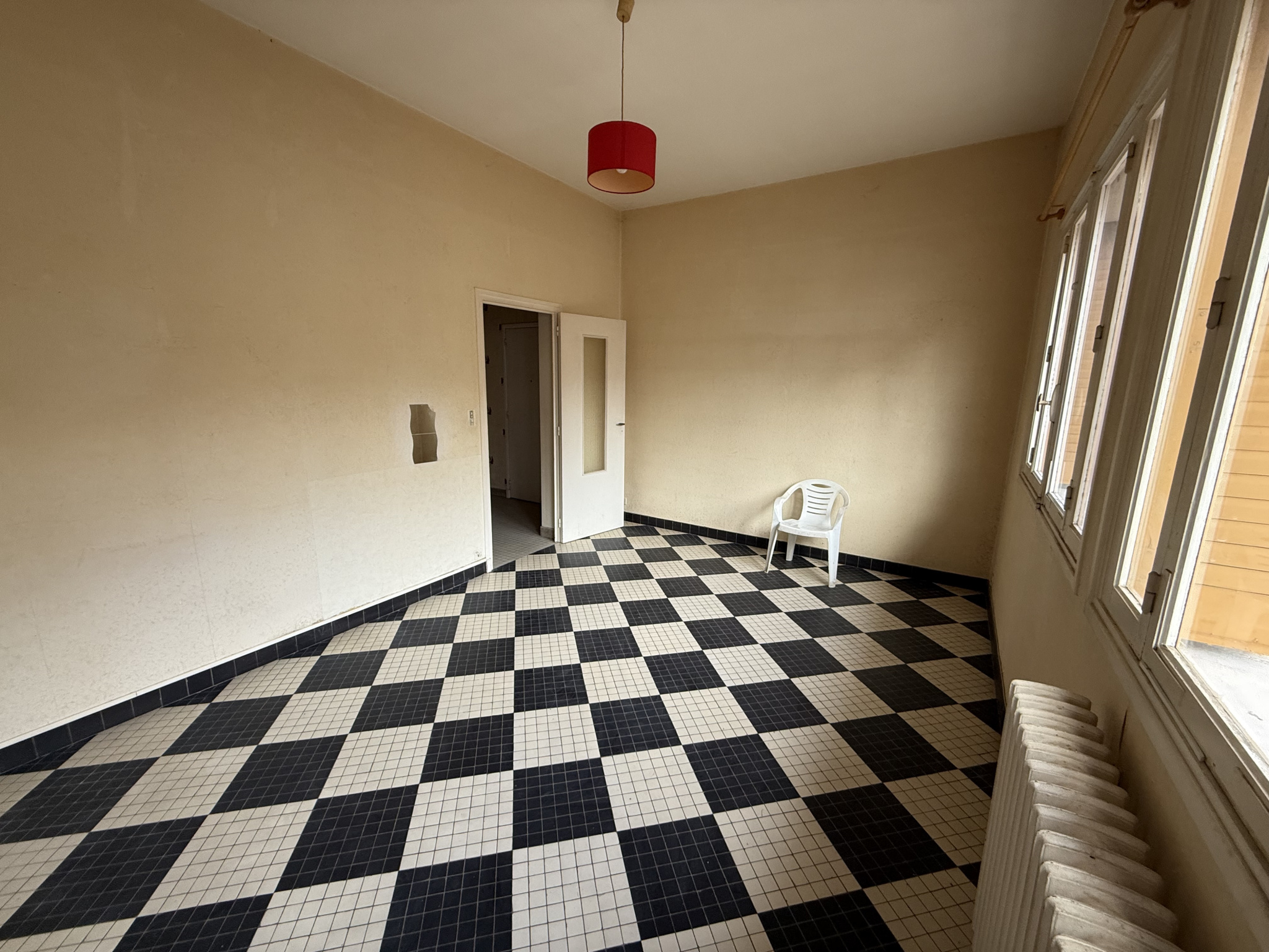 RDC : 2 garages + 1 appartements F2 de 45 m², vacant, DPE E.
