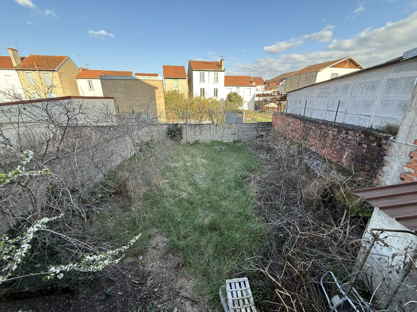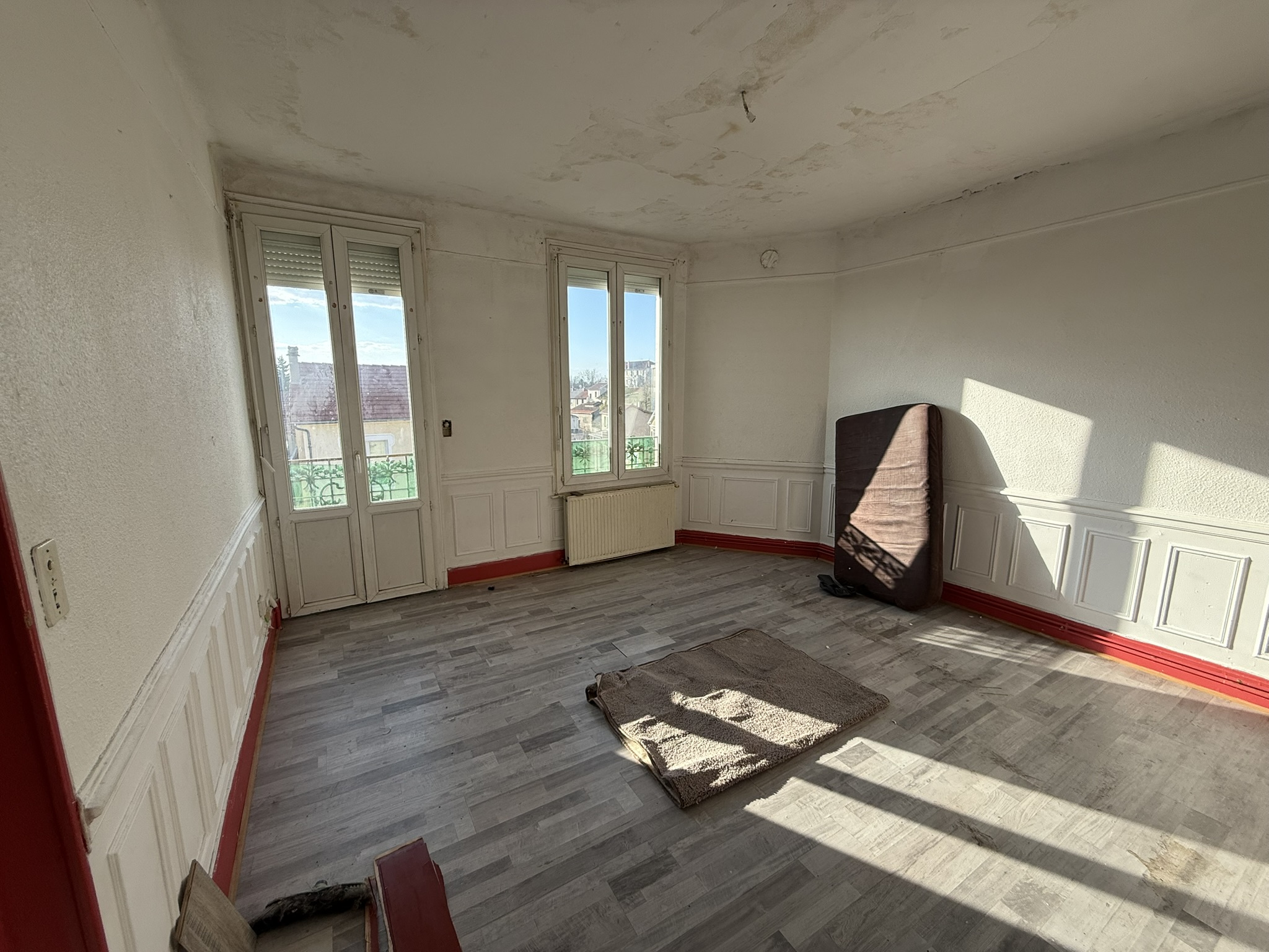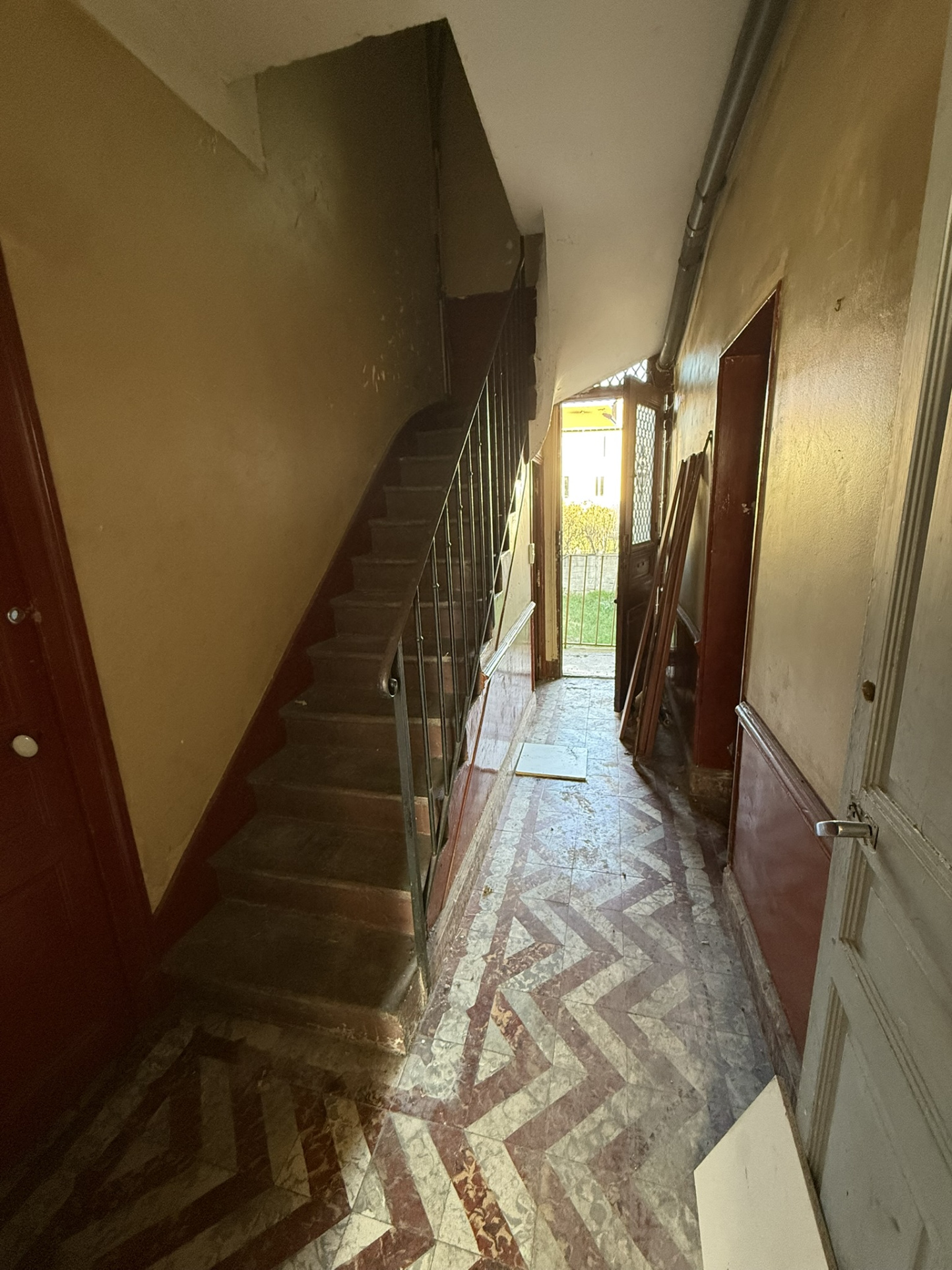 Composé au rdc de 4 pièces : possibilité de créer un appartement de 20 m² à gauche et de 27 m² à droite. Prévoir installation de compteurs EDF.