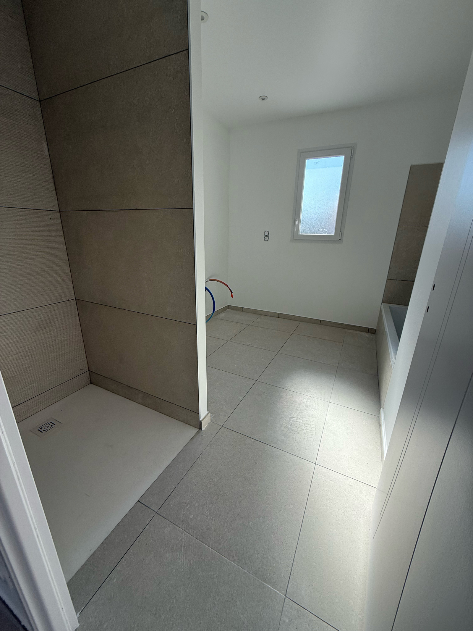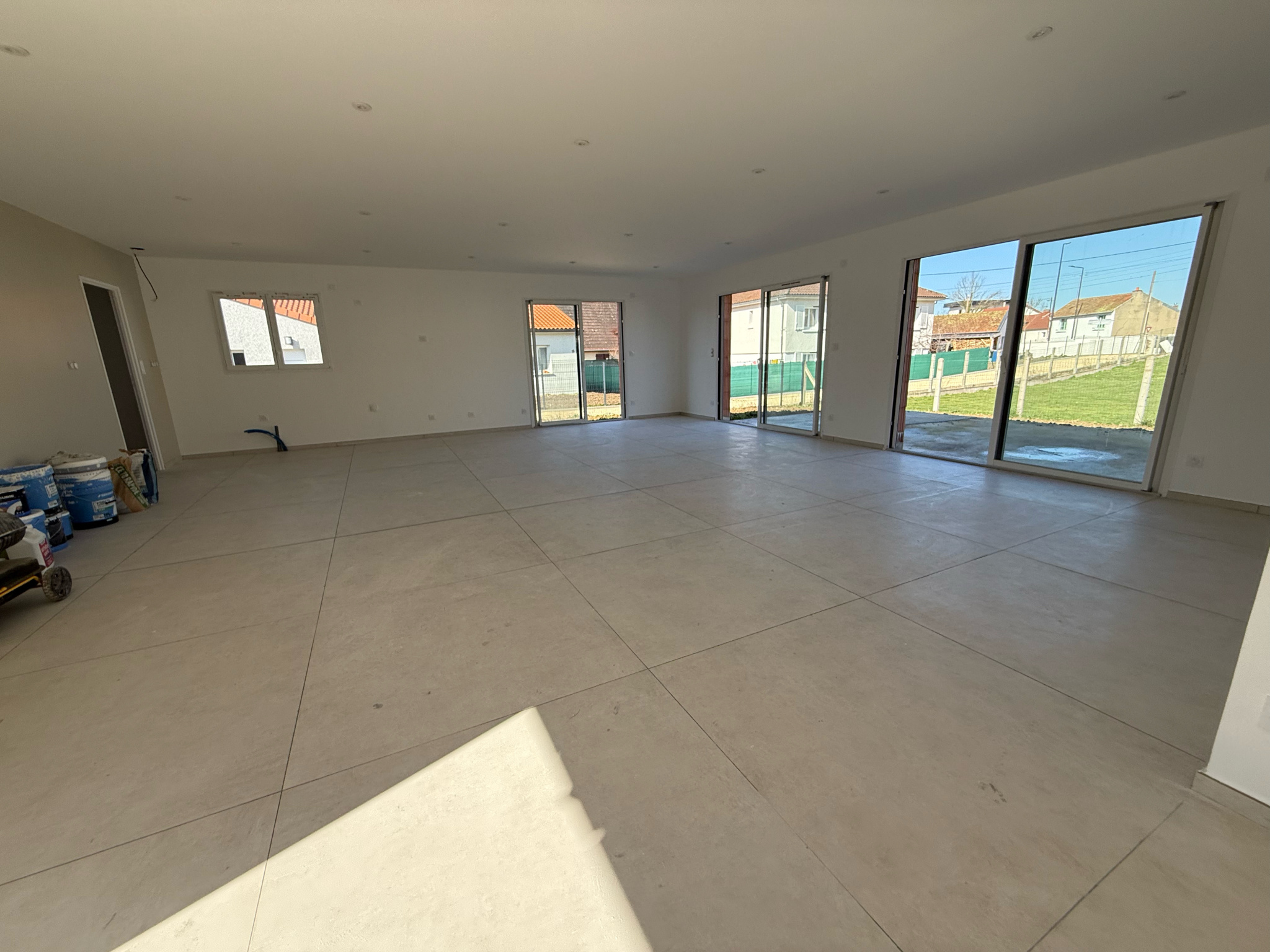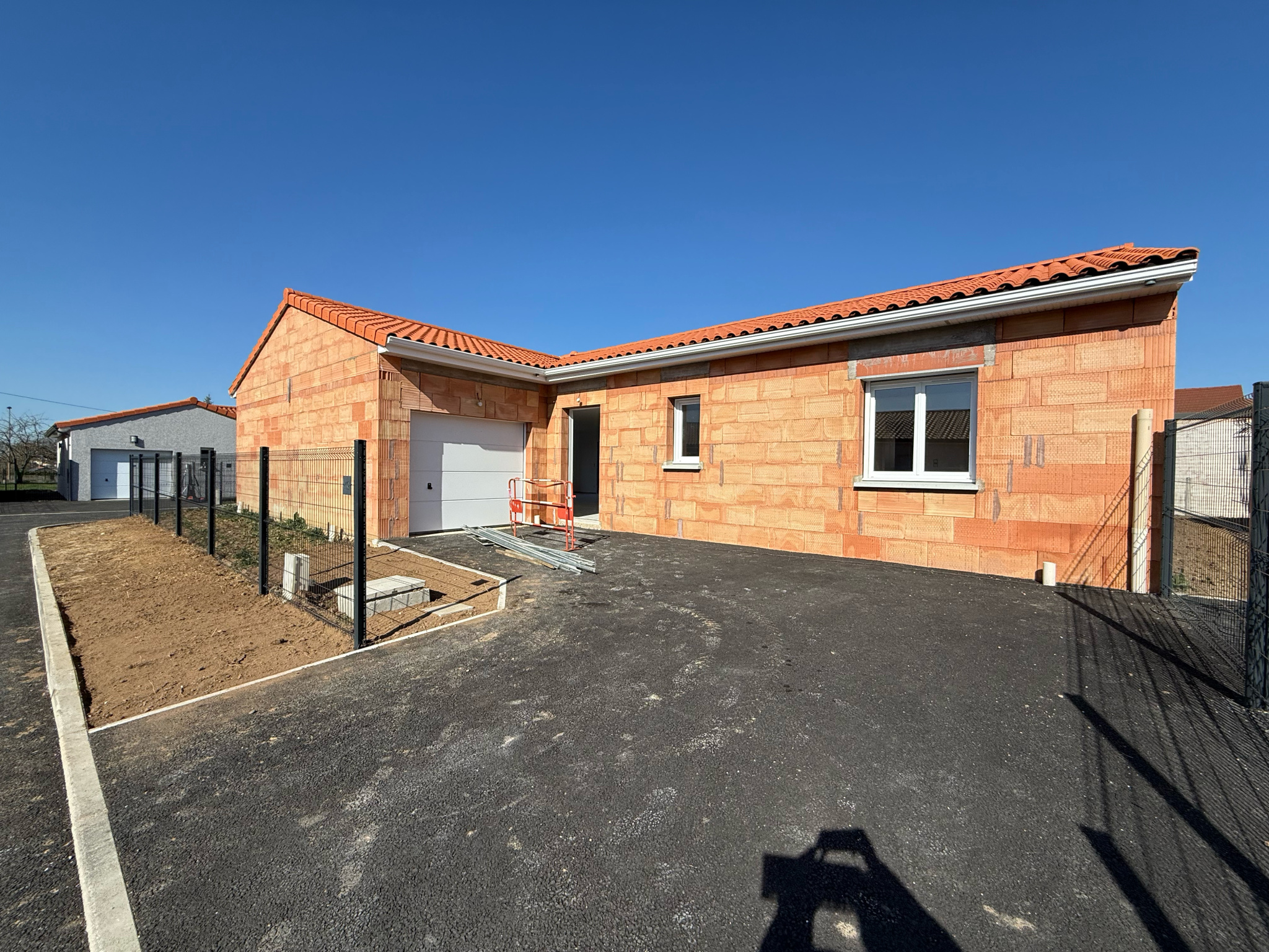 Quartier calme - Construction neuve de plain pied de 125 m² hab comprenant : séjour ouvert sur espace cuisine (à équiper) de 66 m², 3 chambres avec placards équipés, salle de bains avec baignoire et douche, wc, garage de 18 m², sur terrain de 465 m², les extérieurs seront clos et terrasse faite. Chauffage au sol par PAC. Frais de notaires réduits, garanties décennales. Prestations de qualité.